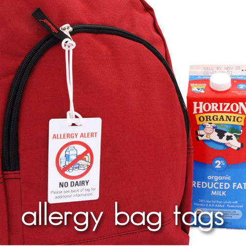 Our Allergy and Medical Alert Bag tags reinforce the message of specific allergies or medical conditions. Use the back of the tag to personalize, list specific allergies, precautions or emergency contact information. If your child carries an EpiPen or inhaler, this is a great way to let care givers know of this potentially life saving item.